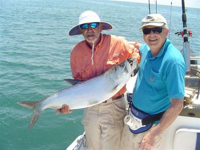 Kings are biting along the beach, and the pogie pods are beginning to show up again after a long absence. I'm still jigging greenies and butterfish rather than spending time searching for pogies. You're liable to encounter schools of spanish mackerel anywhere.So far we've caught two tarpon and jumped a third while fishing for redfish. There are lots of good size black tip and spinner sharks behind the shrimp boats, if you need to bend a rod.