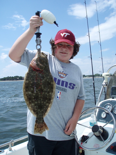 There are some flounder in the river and creeks. We haven't caught any over 5lbs yet. The ladyfish and blues are not as plentiful as they were. Jacks are busting finger mullet schools along the river banks. Whiting and pompano are in the surf. Try for trout early and late with topwater lures, or fish deep with sliding corks and live shrimp.