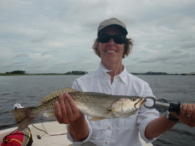Inshore, the ladyfish and bluefish are feasting on shrimp, glass minnows, and baby ribbon fish at the little jetties and near Mill Cove. Just look for the dipping and diving sea birds and fish underneath them. Speckled trout, redfish, and flounder can be caught on live bait or the well-presented lure or fly in the river, ICW, and creeks. There are some bull redfish in the river now ranging in size from fifteen to forty pounds. These are caught in the deep river on heavy tackle. Occasionally, schools of marauding jack crevalle will surface in a feeding frenzy. They are one of our strongest fish and fight with great endurance and are suckers for a top water lure.