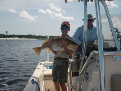 August potentially has the warmest water and provides the best chance to catch a leaping hundred pound class tarpon. These fish migrate north along our coast each summer following the bait pods. Sometimes they can be seen behind the surf crashing into mullet or pogie schools. Other times they will be rolling in the channel edges at the jetties. King mackerel and bonito have now arrived in our coastal waters and will test your tackle with blistering runs in excess of a hundred yards or more. Blacktip and spinner sharks are still following the shrimp boats and can be lots of fun to catch.