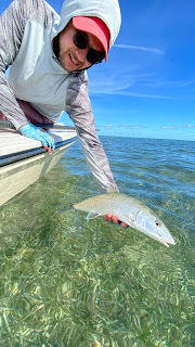 I had Paul today and he wanted to hunt for bonefish. He typically fishes in the keys but wanted to check out Biscayne Bay. We started off fishing the west side of the bay but it was pretty slow. Finally he hooked up and landed the first bonefish of the day. Once the tide was right we headed to the oceanside flats and that proved to be the right move as the only three flats we fished held fish. On the first flat I saw three bonefish cruising and told him where to cast. Paul didn't see them but made a perfect cast and a few moments later he was on releasing his second bonefish of the day a few long runs later. The second flat had some bones tailing in a bit deeper water and he got a bite but missed it. The last flat had some big fish mudding and tailing in super shallow water. Once again he made a precision cast and was rewarded with a nice big fish. Wow, what a day!