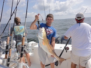 The Biloxi, Ms. charter boat WhipaSnapa (an it's lovely guest). Seriously been hammering some huge, hard fighting reds. Just beyond the Mississippi Sound. Out at the beautiful,an very fishy, Horn Island.