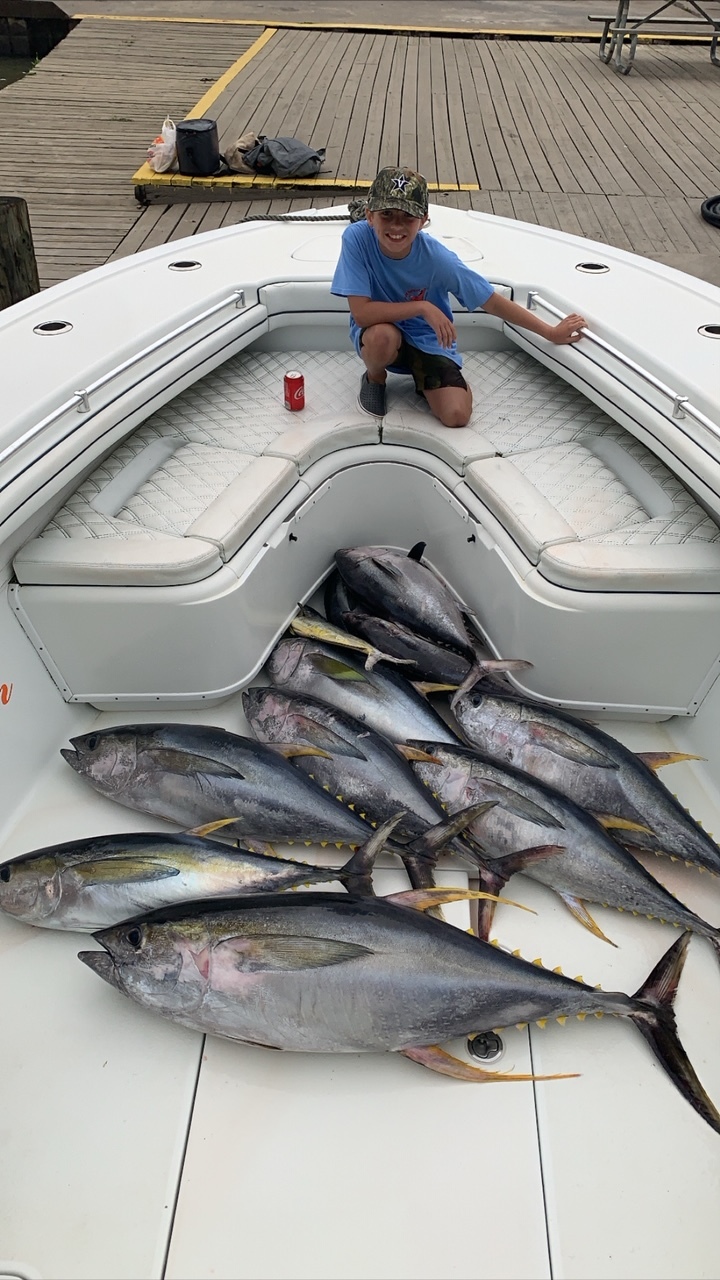 We’re hitting the Gulf of Mexico in our custom 36′ and 39′ Yellowfins with our livewells crammed with live mullet and pogies and our hatches packed with chunk baits to make sure that we cover all of our bases. Our clients have been relaxing in comfort and safety as we rip it out to the tuna grounds to stalk jumbo Yellowfins and Blackfins.