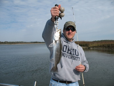 On a charter last Thursday 5th we threw plastics catching lots of Blue fish and Trout but most of them were on the small side. I finished up float fishing live shrimp and we caught 6 Drum in the 5 pound range a several more Trout.