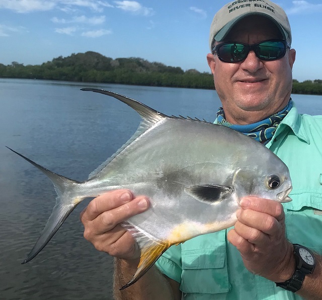 We can at any time catch surprise fish in the back waters, at times can be Sharks, uncommon species of Snapper, we’ve even caught a few Bonefish on my boat in the last few years, one surprise species that we’ve caught quite a few of now days are Permit, normally a tropical species now being caught here and there up here closer to north Florida, here I’m modeling one caught recently by a client …………..