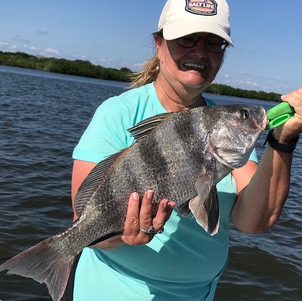 Cheryl from Wisconsin with another good Black Drum, always a good battle on the light tackle I use for back waters trips …………..
