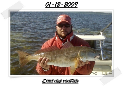 What this extremely cold weather really means for us here in central Florida is adapting our fishing style to make our day on the water successful. Let no one tell you that this abnormally low temperature doesn't make the fishing tougher. These temperatures plummeting to below freezing over night kills a bunch of sea life. Turtles, puffers, needle fish, trout, and redfish can be seen floating or belly up throughout the Indian River and Mosquito Lagoon. Though the fish kill seems to be limited to smaller fish it still affects the behavior of larger ones. Surface temperature of the water has reached well below 41 degrees in the past couple of weeks sending all that lives in it into survival mode. What that means is redfish, black drum and trout can be found in areas of warmer waters such as deeper holes or areas with sandy bottom. Deeper water allows for fish to escape from the surface temperatures which drop significantly over night as the cold wind blows across it. Sandy areas reflects heat rather well so as the sun rises in the sky sandy areas reflect the sun's rays and warms the water around it better, (think of a desert).
