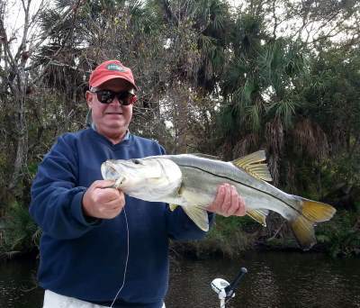 Over the last 28 days I have seen Snook fishing unlike any other January of all my years of guiding ! Over 200 Snook caught I suspect due to our warm weather and good fisherman on the boat, in addition some nice trout and reds as well as the usual fish caught this time of the year. We also have been jumping some Tarpon up the river. The lures of choice have been 1/4 oz DOA Shrimp, Yo-Zuri 3D minnows and white flies. We shall see what this cold front brings us in Feb.