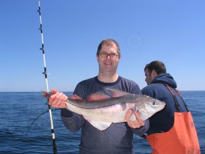 The day started out slow fishing deep water east of Stellwagen Bank where we found good results during the past two trips. With a little wind blowing and fish not cooperating we headed back to the shallow waters on top of the bank. This provided pretty good results with the party landing nice size haddock and market sized cod. Fish were feeding on sand eels along with the gannets that were all over the area dive bombing into the water from high altitudes to come up with a meal.
