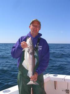 Today's fish were caught on clams and 16 oz jigs rigged with grubs as teasers. Due to the hard work of these guys they put respectable amounts of fish into the box which Curt filleted on the way back to Green Harbor, MA. If the bite was better in the AM, it would have been and outstanding day. At the end of the day I spoke to other charter boat captains who had the same type of day. We would locate the fish, whack a few, go back to the spot and they were gone chasing bait hard and fast until you found another pile.
