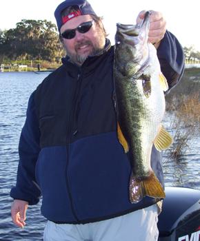 Today was supposed to be a 6 hour combo trip, shiners and artificial, but after waiting at Johns Lake for the bait store to open and 15 minutes late, we decided we didn't need the live bait to catch the bass. Hitting our first spot for the day, and throwing a gold Steel Shad, the bass played as we expected. There was a definite difference in air temperature, much cooler than the day before, and winds blowing 15mph out of the north made for a very chilly morning, bass had pushed out to deeper waters but could not resist these steel shad. John came for some action and had a great time, catching several good slot sized bass. During the action, John managed to snag into a brush pile twice, working the lure free, he kept at it, and I hear " I got it again" John said he was reeling in and it just stopped, thinking he had the pile once again, until the pile started pulling back, after a few minutes, the battle was over as a nice solid 5 pounder found her way into the net for some pictures and a very gentle release, as we could see she was loaded up with eggs.