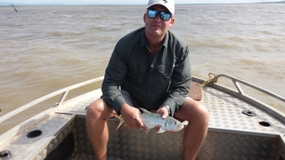 Sadly the water was the colour of coffee and we had no luck with the lures, even 4cm into the water and one could not see the lure and so we decided to switch to bait fishing on anchor instead.