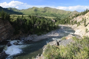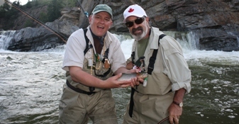 For their 3rd day with I took Matt & Larry to the Oldman. The Oldman was up several feet, was 5-8 degrees F cooler and had several fewer feet of visibility then it had had on Sunday due to the same rains that hit the bow. The previous 2 days the Oldman and southern rivers such as the Crowsnest had been blown out and unfishable so we were pleased with the 2-3' of vis we had.