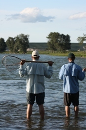 In the evening we found the snouts we had been hunting for. We found several very nice fish feeding actively within inches of the bank in water less than a foot deep, classic bow river snout hunting! We got some great footage of a big brown feeding on the surface but when we slipped into the water behind it to make a cast we must've given ourselves away as the fish stopped rising. We made no mistakes on the next fish though as a feisty 18" rainbow sucked in Tim's little caddis and then slid into the net, a great way to finish the day.