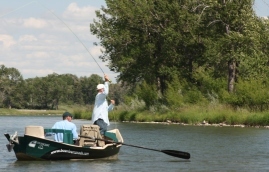Tim, I and the film crew hit the bow today to film the bow segment of the show. Tim was fishing streamers to start the day but other than a few nice fish that boiled as soon as the fly hit we weren't moving many fish. I streamer fished for a bit and the result wasn't much different. We stuck Tim back in the casting brace and I started rowing again, but this time with Tim nymphing. Tim hooked a really nice brown we lost, but followed it up with a nice 19" brown. We then picked up a couple fish from a mid river ledge above Policeman's flats.