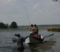 Jason Brown guided Jason Randal and his daughter Erin for us today. After last night Jason had floated with us trying to get that one big fish, today was about two things: one of those being getting a bunch of fish in the net and the second one being getting his daughter into fish. Mr. Brown was able to get Erin into a whole bunch of fish right off the bat and she wasn't able to keep them buttoned, they kept getting off. However a few hours before lunch he was able to get Erin into a gorgeous 22 inch brown that she landed. I don't know who was happier- Erin, Jason Brown, Erin's dad Jason or me- cause I was pulled over with my clients when they pulled in and netted this fish right in front of us, so I was able to get a couple of pictures too. There were a lot of happy people to see such a nice fish go to such a nice young lady. The rest of their day was much of the same, it was very productive. Erin got into 9 fish over the course of the day. Jason Randal had hooked into so many fish and landed so many fish nymphing that for the rest of the afternoon he was just trying to get that one big fish on a streamer or fish dries as well to get a couple of nice eats. Pretty nice when the day is productive enough that you can pick the way that you want to catch fish. It's always nice when things work out the way they are supposed to.