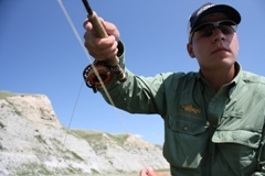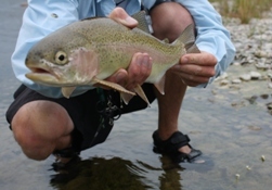 I had a day off today so Mike and I headed down south to fish a mountain stream. We were very optimistic and hopeful to get a bunch of nice fish on dries today. The point of today was definitely dry fly fishing. We had to work for them today though. The day started with us casting stone flies and single dries or even two dries. I had one really nice fish, a rainbow well over 20 inches come up and eat my stone fly that I missed. It was a long cast and I had too much slack and just fisherman error, I missed that fish. The dry fly takes were few and far between. I had one other eat on a caddis that I missed, I farmed that one too and missed it. The fish were not overly eager to come up to the surface. It was hot, nice blue skies and the fish just didn't want to come up to the surface. Soon as we put droppers on and started fishing droppers underneath the dries we started picking up fish. We actually picked up a lot of fish in the afternoon but all of those fish came on the droppers. We were reluctant to do that and kept trying to fish the dry but the dry fly fishing just wasn't happening. I was reluctant to fish droppers just cause I really wanted to get fish on the surface however as soon as we started fishing droppers the fishing really picked up. All the fish we caught were real quality fish. Mike got a bunch of nice rainbows, I got a bunch of nice rainbows and all the rainbows were just kind of carbon copies in that 18 to 21 inch range, all nice and healthy, all very strong and fought exceptionally well. The fishing was good if you fished the right things, the fish just didn't want to eat on the surface today. Unfortunately it was so hot there just weren't a lot of bugs hatching. We had to take off cause I had to get back to Calgary cause I had trips in the morning and couldn't stay late to fish the evening hatch, but it was a good day fishing, nice to get out, nice to get a bunch of fish that fight that hard. It's always nice to fish different water when you get a chance to.