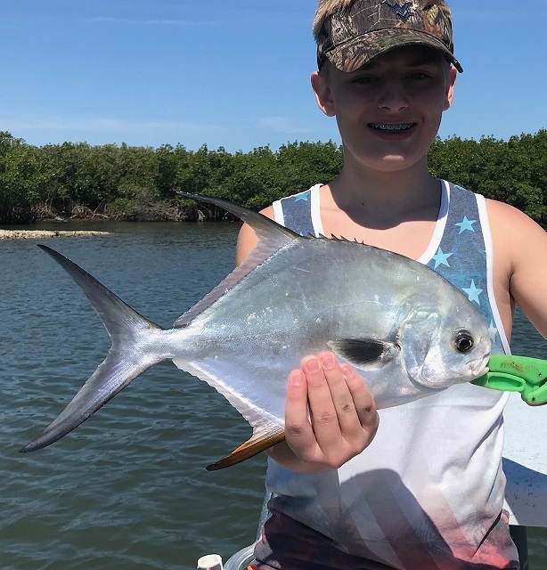 Young Brandon from West Virginia had a fun battle with a good little Permit on his first trip with me along with his family also catching several more species on a fun trip ………………..