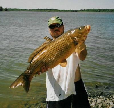 Jimmy and I headed back to the St Lawrence river for some carping. Another great day on the river, weather was sunny, around 28-30 degrees, 10 KM / hour wind. Jimmey started for carp right away, I started off trying for Northen pike, nothing much biting on the minnows. The carp we great though, especially after I did some chumming with my home made spod. We hooked fifteen carp, landed nine. I beat my personal carp record, landing a 26 Lb female, Jimmy caught his first channel cat, which weighed in at 9.5 lbs, on corn intended for carp. He also caught his first walleye, measuring 12 inches, amazingly, it swallowed a hook baited with corn too. So much for trying to target species, looks like everything is eating corn these days…