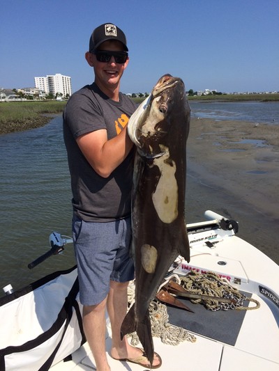 Tackle run down: PENN Battle II & Clash Spinning reels 2500, 3000 & 4000 sizes for the Redfish and Flounder. Cobia: PENN SpinFisher V & Clash 6000 & 7000 and PENN 20LW Fathom casting reels. Rods PENN Battalion and Regiment 6'6" & 7' medium and med/heavy for the Redfish and Flounder. Cobia Rods: PENN Rampage or Carnage II Jigging series 50 to 100 class casting and spinning. Line Spiderwire Ultra-cast in ten and fifth-teen pound and Berkley Pro Spec Chrome mono in twenty and thirty pound for the Cobia; that is great line!!!