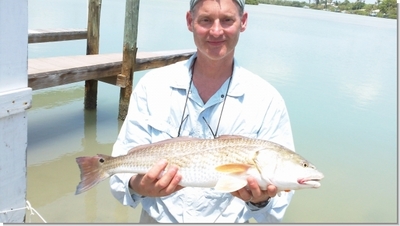 We did get my keeper redfish back to the dock safely, along with the flounder. Jeff and I each took a fillet. He emailed me the next day that he'd had it blackened at a local restaurant and that it was fantastic. Jeff told me he'd had an awesome time, and was worn out from fighting the tarpon, redfish, and the sun. He promised he'd be calling to go again on his next trip down.