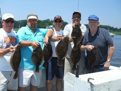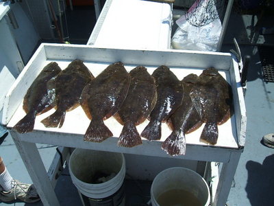 left the dock at 7am with brandon, george, barry gary and vic, within minutes of our first drop the first keeper fluke caught by gary came over the rails, steady action was had thruout this trip with a total of 7 keepers to 20 inches, a good time was had by a very nice bunch of anglers, Capt Joe.