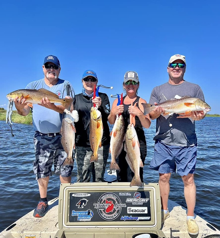We made a short run West, put the trolling motor down, and went to work on them right out of the gate. We moved through the marsh picking up one here and there until we got on a steady big fish bite late in the day. They kept their share and released the rest to fight another day. A great day with a great crew!