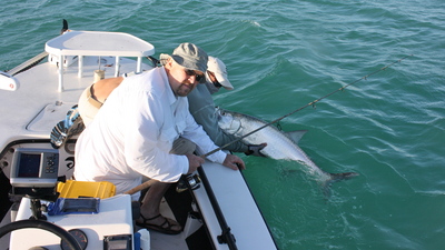 I had the pleasure of fishing with drew and justin lawson on the last day of february 2011. we left the dock before first light to look for tarpon. the flats fishing off key west has been fantastic and this day would be no different, justin hooked the first tarpon at just around 7 and landed him very quickly. we set up again and drew hooks up minutes later to land the midsize tarpon you see in the blog. The tide starts to slack so i decide to head west of key west to fish for some tailing permit, are first shot come about 10 minutes after i started polling my flats skiff. justin made a few bad cast but then puts the crab where it need to be and the permit races over tails up and somehow eats the crab without getting hooked. I move to a flat a little moor to the west and we instantly see a tailing permit on the crown of the flat. drew makes a great cast and we are 2/3 the way to the coveted key west flats slam. I head towards the atlantic where i have been catching bonefish and the first flat does not produce but the second does, minutes after i start polling i notice discolored water a sigh of a large number of bonefish. when i find the school it is a large number and i have drew over cast and reel up on the bones, the rod bends over and there is the slam.