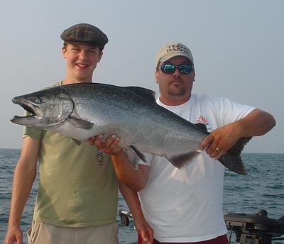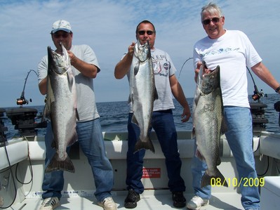 Lake Ontario king salmon have been turning on big time. Lake Ontario charters have been finding better numbers of salmon from the Salmon River north to Sandy Pond in 100-130' of water. Most the salmon are hitting on the deeper side 20-30' off the bottom. Flasher/fly combos have been working best but Stinger Mag spoons have also been taking fish.