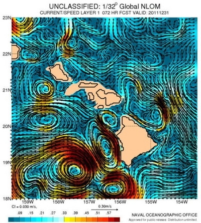 The bottom bite wasn't very good this month because the current was going the wrong way for most of the month. As soon as the current switched to its normal North direction for Kona, that's when all the fish showed up on the ledges. If you're a follower of my reports, and I know there are many of you out there, you've heard me say many times that "the current is king" when it comes to the fishing in Kona being good or bad and that there was no way to predict it. Well, I was wrong. A friend of mine sent me a link to a Navy web site and I was astonished! Fairly accurate predictions up to a month in advance with the sea surface height, the sea surface temperature and also the speed (given in meters per second) and direction of the currents. Not just for Hawaii but almost everywhere in the world! I have been following the Hawaii predictions all month and with few exceptions; they were right on the money. I'm sure there are some around that have known about the site for a while but not one captain I talked to knew about it. This information is extremely valuable in an area like Hawaii where the currents can change so rapidly and have so much effect of the fishery. Excited yet? Where is it? Here's a belated Christmas present to you all. Just Google NLOM Navy and it will be on the top of the search. At least it was for me. Google can tweak its results depending on your previous searches but it should be on the first page anyway. And with that, have fun with it and have a happy new year.