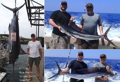 Again, for the third month in a row, it's the spearfish that are dominating as the most common catch. That bite should continue through April. The striped marlin made a decent showing this month as would be expected and tapering down as the summer gets closer. The blue marlin trickled in this month and since March is the month that the most "granders" are caught here, we were expecting again for Kona to catch the first grander of the New Year. Nothing yet, from here or anywhere else in the world but as time moves on, our chances dwindle. Not for getting any granders this year, just for being the first in the world to do so.