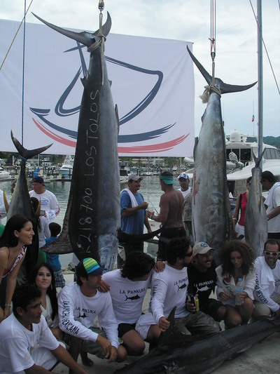 everybody hit the corbetena and that is where the marlin and tuna were yesterday,we all trolled live bonita and raised several marlin, the largest was 218 kilos around 500 lbs