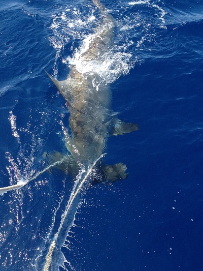 The fishing excitement was not over though, as a sailfish swam up and ate the left long bait while we were releasing the Silky shark! This sailfish really put on an excellent show by jumping all over the ocean. It was just another great day of fishing in Fort Lauderdale.