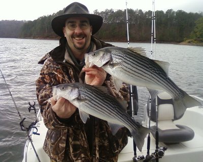 Line side fishing is Good. The bait is finally moving up in the water colum and so are the fish. Flat lines and planner boards have been working well early morning and then late in the afternoon. After the sun comes up you need to switch to down lines. The bait is starting to move south and so are the fish. The best bite this week has been from Galts Ferry to the Dam. Bartow Carver beach is a very good starting point. The fish are feeding on small baits right now. Medium shiners and small thread-fin shad are the ticket right now. As the water starts to cool to the mid 40's then you will need to switch to bigger baits like trout and Gizzard shad. The trolling bite is still good. And single buck tails fish 75 feet behind the boat at 2.5 miles and hour seems to be working as good as anything right now. The umbrella rigs are also working well right now. I still have a few days open for Christmas break if you would like to book a trip please give me a call at 770 827-6282.