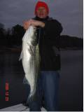 Line-Sides is Good. I didn't fish as much as I would have like this week due to the weather but the few times I was on the water fishing was good. The bait is starting to move back into the Creek and so are the Striper and Hybrids. Mid lake seems to be holding better numbers of fish then the southend and the northend but I think all the creeks on the lake will produce line-sides right now. Shiners fished on free-lines and planner boards are producing better then trout and shad right now. Remember to down size your hooks to match your shiners for more strikes. After the sun comes up switch to pulling umbrella Rigs. I have had my best luck this week pulling my rigs 145 feet behind the boat at 3.1 to 3.4 miles and hour. And have caught fish weighting up to 16 lbs. As the lake starts to clears the umbrella rig bite will get great . I still have a few days open next week. Give me a call at 770 827-6282 if you would like to book a trip......