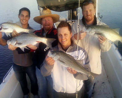 Line side fishing is good and the bite this week is the same as last week so change nothing. The water temperatures finally hit the magic number of 55 degrees and with that the top water action has taken off. Flat lines and planner boards are working great right at sun up threadfin and gizzard shad are working well. By mid day change over to down lines. But trout seems to be out fishing shad 3 to 1. Mid lake is still the place to be. There are tons of fish between Kellogg Creek and Stamp Creek right now. This is the only part of the lake we have needed to fish in the past 3 weeks. There may be some fish up in Allatoona Creek we just haven't been that far south in weeks. Trolling has been by far the best bite on the water after the sun comes up. December and January are 2 of the only months of the year that trolling will out product live bait fishing sometimes as much as 7 to 1 in a full day trip. This is the time of the year you have to be universal when it comes to striper fishing. We prefer live bait fishing over trolling but there are just sometimes of the year that trolling just can't be beat. Top water is really starting to heat up. So keep a spook or a Sammy ready for these busting beasts.