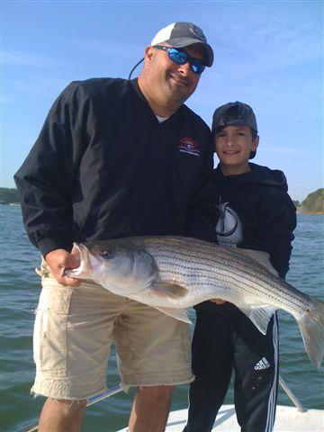 Line-side fishing is starting to really heat up. The upper Etowah is with out question the best bite on the lake. I got e-mails and phone calls from different anglers who have been wearing them out up there. Any where from Fields Landing all the way up to the ball field in Canton. I have seen pictures of some really good fish caught up there this week. Stripes well up in the 20's and Hybrids around 10 pounds. But with the river run being so strong this year. So is the boat traffic. Even a strong river run like the one we got this year. There will only be about 30% of the fish up there. So with that being said I decided to stay south of mid lake. And have been doing very well.. All your main creek are holding fish. And so are your beaches. The water Temp is in the mid 60's. And this is prime for top water. Free-lines, flat-lines and Planner boards are working best.