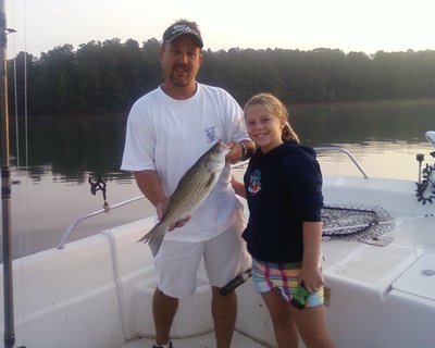 Line side fishing is excellent and it's the same as last week. An average trip this week has been between 20 to 35 fish on a four hour trip and its easy fishing right now. It's been incredible and it's really ABC fishing. Pick a main lake point, start in about 20 feet of water and start working out with your down lines. The line sides are setting up 18 to 24 feet deep, but they might be suspended over a deeper bottom. Today we didn't find them until we hit the 60-foot bottom, but the fish were 24 feet down. The umbrella rig is producing along with the down lines, but bites on top water and flat lines are nonexistent. The south end of the lake is the key. If you are fishing within sight of the dam, you're in a good area. Fish from Clear Creek south and then into Allatoona Creek to about the railroad trestle at the southern end of Allatoona Landing. There's nothing up north and the white bass bite has died. One other thing worth mentioning is last year's stocking of 100,000 stripers, about three times more than the lake normally gets. And I think every one of them lived. We have never seen so many peanut stripers at a pound, in my life. But the hybrids that we are catching are big and strong. www.lakeallatoonafishing.ner
