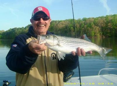 Striper fishing is good. Not much has changed this week. The weather has been the key all week. We get on some good fish and a cold front will come through and mess up the fishing for a couple of days. There is an early morning bite on free line herring and planner boards pulled across points and flats. After about 9:00am start weighting your lines with split shots and move over deeper water. You should also hang a downrod over the side and adjust the depth as need. Without a well defined pattern the key is to "cover water" with herring on free lines and boards. The spots are biting and if you can catch them on a 1/2 oz. Captain's Macks bucktail. The spots will also "skin" your herring without you knowing. Keep an eye on your lines and check your baits often. The fish are scattered lake wide from the mouth of the creeks to all the way in the back. Some fish have even been caught over open water in front of Brown's Bridge and over deep water in the mouth of Flat. Mid lake seems to be best. Chestatee Bay, Flat Creek and Balus are good places to start. The mouth of Shoal, the Dam area and Baldridge are holding some fish. The North end creeks and the Rivers continue to be slow but should be catching fire any day.