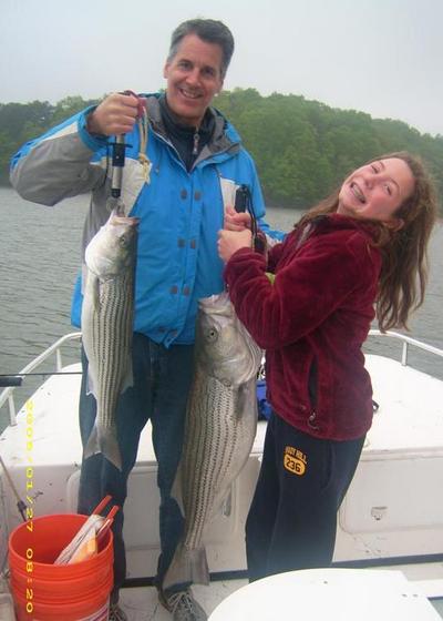 Striper fishing is good. Not a lot has changed this week. The weather continues to be the key. Storms, high winds and cold fronts continue to make fishing challenging. There is an early morning bite with some quality fish being caught. The numbers of fish being caught is improving and if the weather holds the fishing should "fire up" this week. Flat line herring 80 - 100 feet back with planner boards at 50 feet back continues to be the best bet. After about 9:00am start weighting your lines with split shots and move over deeper water. A large Gizzard on a balloon about 150 feet back is always a good idea. You should also hang a downrod over the side and adjust the depth as needed. With the increase in water temperature, the top water bite should kick in any day. It's time to tie on a Red Fin, Chug Bug or Spook and spend a little time throwing to points. The fish are starting to move out of the backs of the creeks and will start to move up on points from half-way to the mouth of the creeks. The spots are biting and can keep your grandchildren busy during the slow periods. They will also "skin" your herring without you knowing. Keep an eye on your lines and check your baits often. I pulled Umbrella rigs again this week without any success. The fish are scattered lake wide from the mouth of the creeks to half way back. The North end has improved with a few fish being caught in Sardis, Ada and Gainesville creeks. Chestatee Bay, Flat Creek, Balus, Six Mile and Two Mile creeks are also good places to start. Baldridge, Shoal and Flowery Branch have been slow this week.