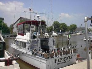 AA Phoenix fishing charters will go into the water at City Sheboygan marina in mid April. The Port of Sheboygan is known for is large fish and large catches of Lake Michigan Trout and Salmon. A Sheboygan harbor fishing report will be available for the 2006 season. The 2006 fishing season is no exception. Large catches of Lake Trout and Brown Trout will start out the season with a few King Salmon mixed in the bag. Most boats will be fishing near shore. The fish will be biting on a variety of Pro-King spoons, and fly-dodger combinations.The white dodger with a medium length green and gold fly is very good
