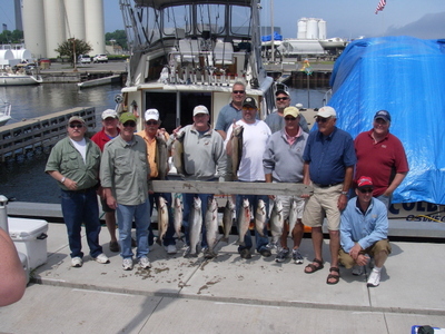 Speaking of kings 100 to 200 FOW just west of Oswego is producing fair to good catches every day. 50 to 100 down green e-chip flashers with Atomik green glow, green crinkle and hammer flies and white green dot spin Drs with the same flies are the ticket. Many fish in the 15 to 22 pound range have been caught recently.