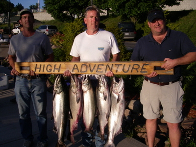 Spin Dr's & Pro- Troll E-chips trolled 2.2 to 2. 6. Best colors, Green, white and chrome. Atomik flies in Glow Big-fin, B-Fly, Green glow, Hammer and the hypnotist will entice them to go.
