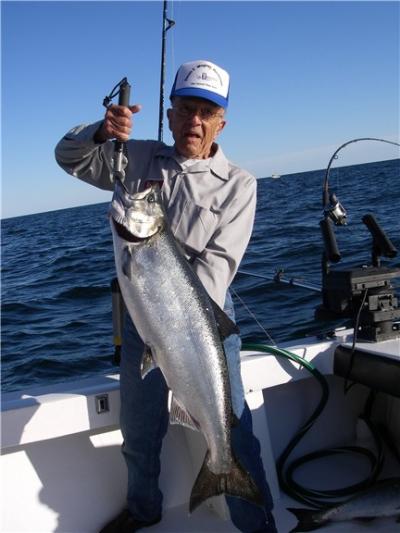 Trolling speeds of 2.2 to 2.5 mph is what they are looking for. Look for the fish to be 50 to 100 feet down. This has been a good salmon season to date and things will keep getting better. There are a lot of fish out there right now just waiting to be caught.