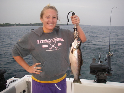 Brown trout continue to be the target of choice and conditions resemble early May as we are catching fish in 10 to 50 FOW and surface lures like smithwick rogues are still a top bait. Downriggers with Dreamweaver and stinger spoons in green, black and silver and orange have been good. Colors like Monkey puke, the gator, hitman, tuxedo, rosemary's baby, diehard, and the goby patterns will all take fish. There is no real hot spot, just look for bait and good temperature and beat it out. We are even finding some lake trout in 100 to 120 FOW.