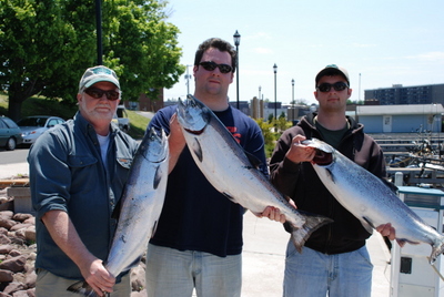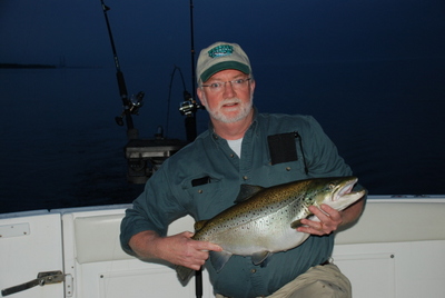 Brian and the boys made it up for their annual holiday weekend marathon. They took it easy on me and we only fished two full days on the big pond. The hotspots over the holiday weekend were the buoys at nine mile point early for browns and then 150 to 200 FOW between Nine mile and Oswego was good for salmon and steelhead.
