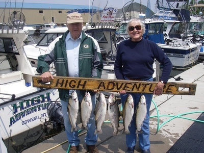 For brown trout, we are working 10 to 50 FOW and the best baits are a black silver white belly smithwick, fished on the surface about 150 feet behind the boat and dream weaver spoons in black and silver, glow green, and orange, fished 5 to 30 feet down off of the downriggers.