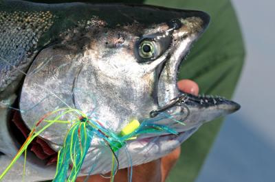 Out of Oswego, Fair Haven and Mexico bay, boats are catching 6, 8 and even 12 fish per outing. The salmon are in 110 to 300 feet of water, 70 to 120 feet down. Flashers, dodgers, flies, and spoons. It seems that everything is working. That's the beauty of having a lot of fish – they're not fussy, and they are all competing for the bait. Not only are we catching good numbers of salmon, but the bigger fish are really starting to show. The Pro-Troll e-chip and the Dreamweavewr Spin Dr in white or green is working well. You may have to play with the fly color, but do not venture out without a couple of Atomik Hammer Flies.