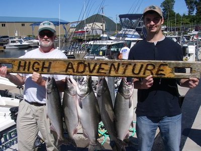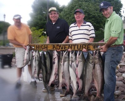The best spot has been in front of the Salmon River. It is just incredible! Flasher and fly combos are doing the best with plugs & spoons taking fish early.