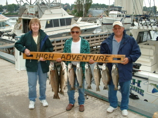 Fishing here is pretty easy offshore, there is a trash line 2-3 miles with all size steels and kings 40 to 80 dn Ne/SE troll 2.2 to 25 spoon dn speed depending on the blade. Most are keeping one diver with an emerald /kelly green opti enticer and a green opti or atommik fly for the majors.